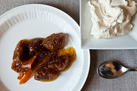 WHAT: Dried figs bathe in honey and brandy, to emerge plumped and bursting. A silky bed of lemony cream whipped with mascarpone awaits them.