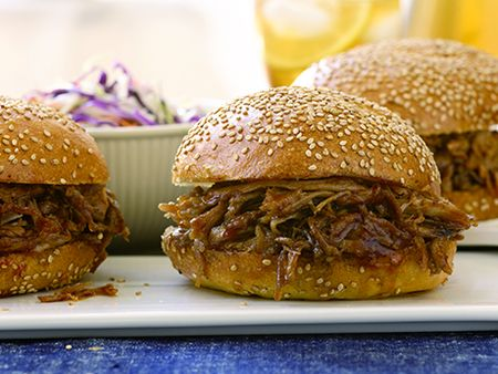 Above: Slow-Cooked Pulled Pork Sandwiches "The payoff is meltingly tender pork in a sweet sauce. To round out the meal Southern-style