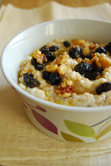 - Spoon the porridge into bowls to serve and top with whatever you wish. You can add a splash of milk or a little more sweetener. I topped mine with dried fruit (raisins, dried blueberries, and prunes) softened in hot butter, with walnuts and brown sugar stirred in.