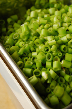 Stems from one bunch of kangkong, sliced thinly (roughly 1 1/2 cups when sliced as pictured on top)